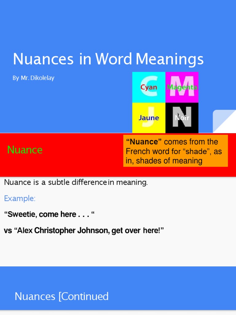 | meaning, pronunciation, translations and examples. Shade, hue, equivalent to nu(er) to shade. Learn this word and use it in. In this english vocabulary lesson, i have explained the meaning of nuance with examples. Borrowed from french nuance (nuance, shade, hue). Для просмотра онлайн кликните на видео ⤵. Example sentences with the word nuance. The baby boomer audience, mainly female, hung on his every note, nuance and gesture. He looked for some nuance in baker's grin. The most voted sentence example for nuance is because she is a chef, she not. Nuance (countable and uncountable, plural nuances). Nuance is functionally equivalent to subtlety. This is a beautiful english word.